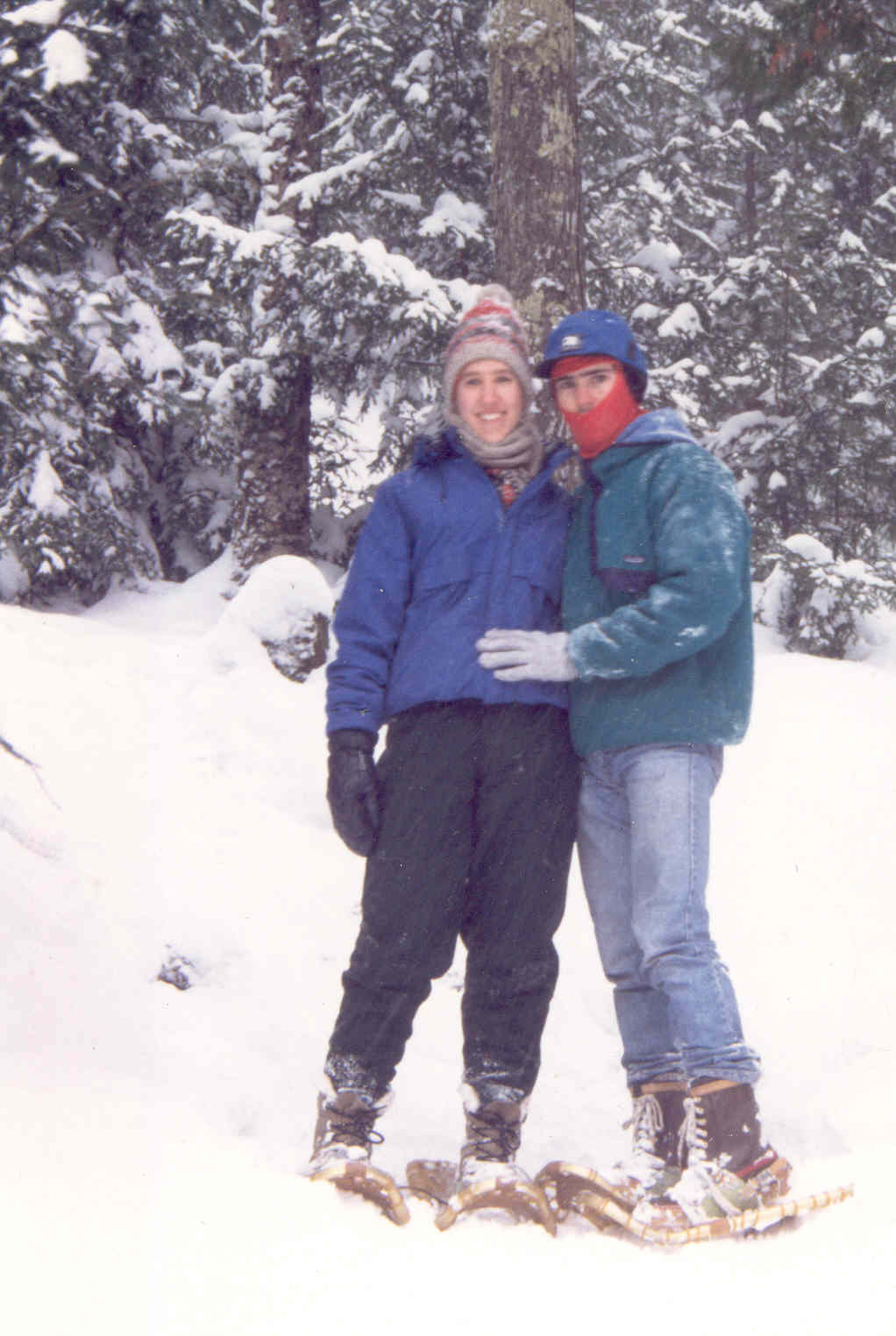 Snowshoeing on a winter camping trip in the Porcupine Mountains, Michigan, in 1990