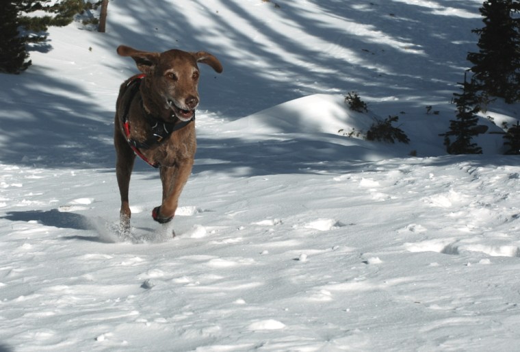 Molly joined our small family unit when she was 7 weeks old and took to the trails immediately. For the next 13 1/2 years, we were a party of 3 and were pretty much inseparable. Molly came along on just about every skiing, hiking, backpacking, climbing and canoeing trip we went on. She would often jump in the car as we were packing up, fearing that we might leave her behind. She need not have worried– adventures were always ten times more fun with her along. There were only rare instances when Molly didn’t join us– usually when we were doing long multi-pitch climbs or traveling to an area where dogs weren’t allowed like national parks.