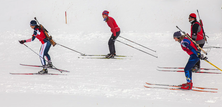 It’s as harsh out here as on top of peak in a snowstorm. This thought pounded in my head as I cross-country skied down a slope in my second-ever biathlon. The wind was blowing against me so strongly that I had to use my poles to make downward progress. I was freezing in my minimal layers, and I felt eerily alone on the course with no one in sight and snow swirling all around me. The weather was declining rapidly, and I was relieved to be on my final of five laps.