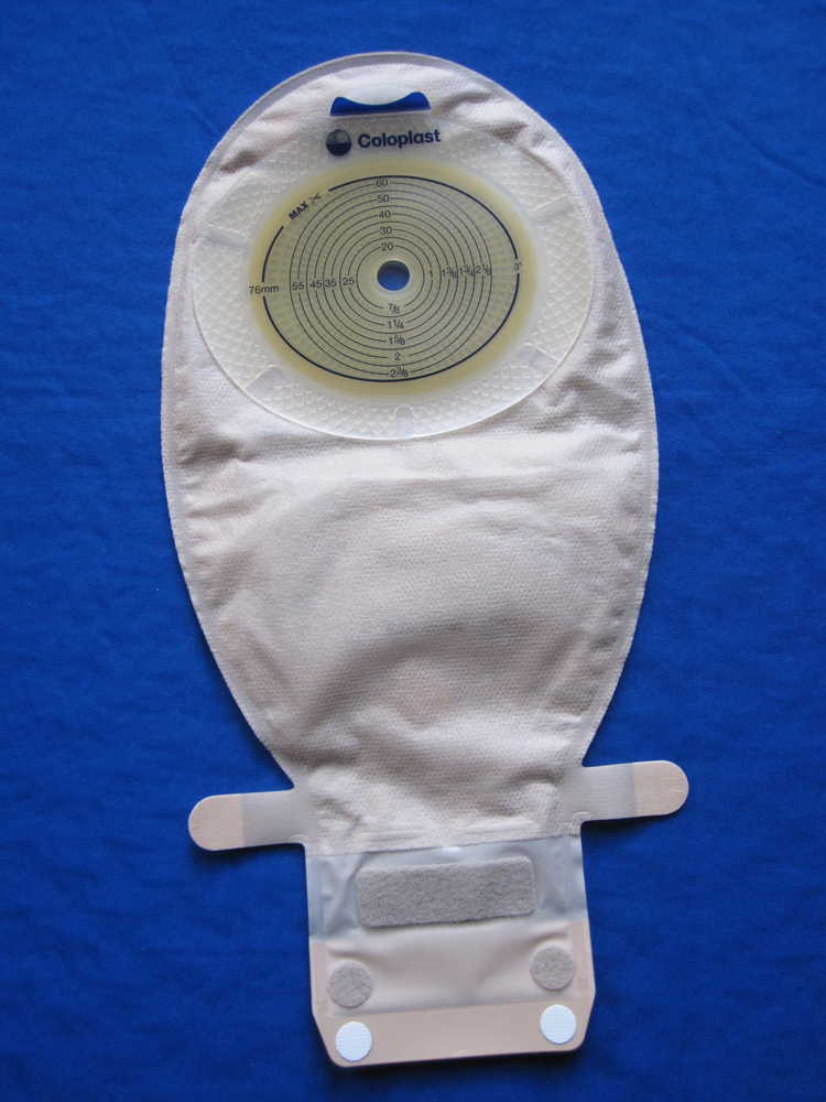 There are also choices for the pouch portion of an ostomy appliance; they come in drainable or closed-end versions. Drainables have a tail that unfolds so that output can be emptied out of the bottom. Once the tail of the pouch is wiped clean, it rolls up and closes with either a clip or a Velcro strip until it needs to be emptied again. A person with an ostomy may use the same drainable pouch for multiple days.