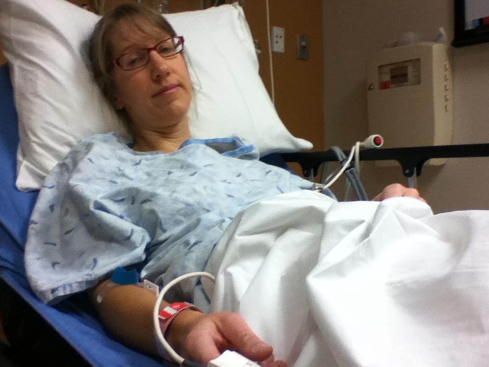 Seasoned from the days when I would wake up screaming from Remicade-induced joint pain or the times when I needed to be taken to the hospital late at night for UC flares, Doug sprang out of bed and into action at top speed as if he had rehearsed it 100 times. He helped me get dressed and he held my hair back when I began to vomit from the pain. I am not sure how I managed to walk on two feet out to the car, but soon we were zooming down the road to the hospital. Curled up in the front seat, I tried to use the mindfullness meditation techniques I had learned after surgery, and I attempted to focus on each breath instead of the waves of pain and nausea I was experiencing. When we got to the ER, Doug ran in to get a wheelchair while I waited doubled-over next to the car. A nurse heading in to start her shift rushed over to help. Within minutes, I was lying in a bed hooked up to an IV with some much needed Dilaudid.